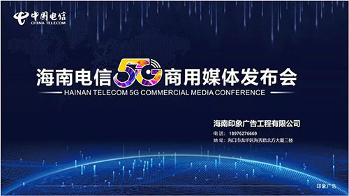 5G時代,未來已來。公司為海南電信5G設計的方案色彩搭配與產(chǎn)品展示等都體現(xiàn)出滿滿的未來感,并將電信與5G緊緊聯(lián)系在一起。