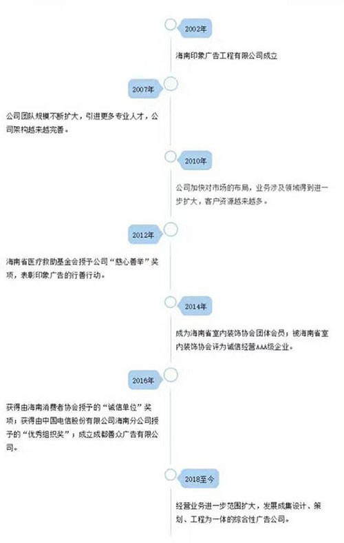 從小喜歡藝術和向往美好生活的向品賢先生,剛來到海南熱土,從廣告設計做起,經(jīng)過一段時間,在對海南市場有了一定的了解之后,于2002創(chuàng)建海南印象廣告工作室,歷經(jīng)幾年發(fā)展,業(yè)務也得到大大的提升,2007年起,工作室改為海南印象廣告公司,迅速全面的展開廣告公司的全套業(yè)務,一步步地發(fā)展,也穩(wěn)穩(wěn)地建立起了業(yè)內(nèi)良好的口碑和知名度。