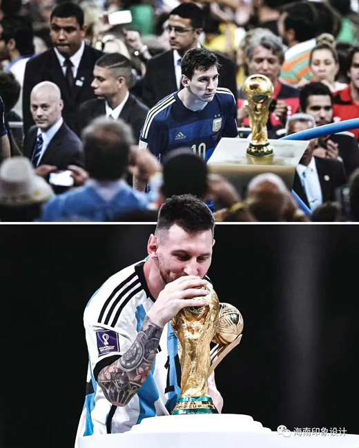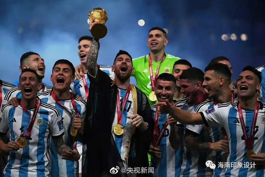 36年的等待終于在今朝落于實(shí)處,阿根廷球迷在盧賽爾體育場(chǎng)看臺(tái)上展示的馬拉多納大幅海報(bào)微微晃動(dòng),1986年阿根廷奪冠時(shí)的10號(hào)“看著”2022年身穿10號(hào)的梅西打入兩球,經(jīng)歷了加時(shí)賽與點(diǎn)球大戰(zhàn),再一次將“潘帕斯雄鷹”帶上世界之巔。在賽后個(gè)人獎(jiǎng)項(xiàng)頒獎(jiǎng)儀式上,梅西榮膺世界杯金球獎(jiǎng),并“提前”深情親吻了大力神杯。