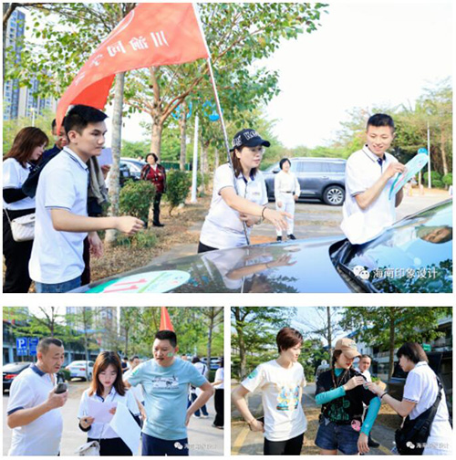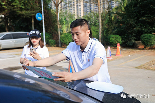 齊力合作做好出發(fā)前的準(zhǔn)備工作,把物料準(zhǔn)備好,把車(chē)貼貼上。