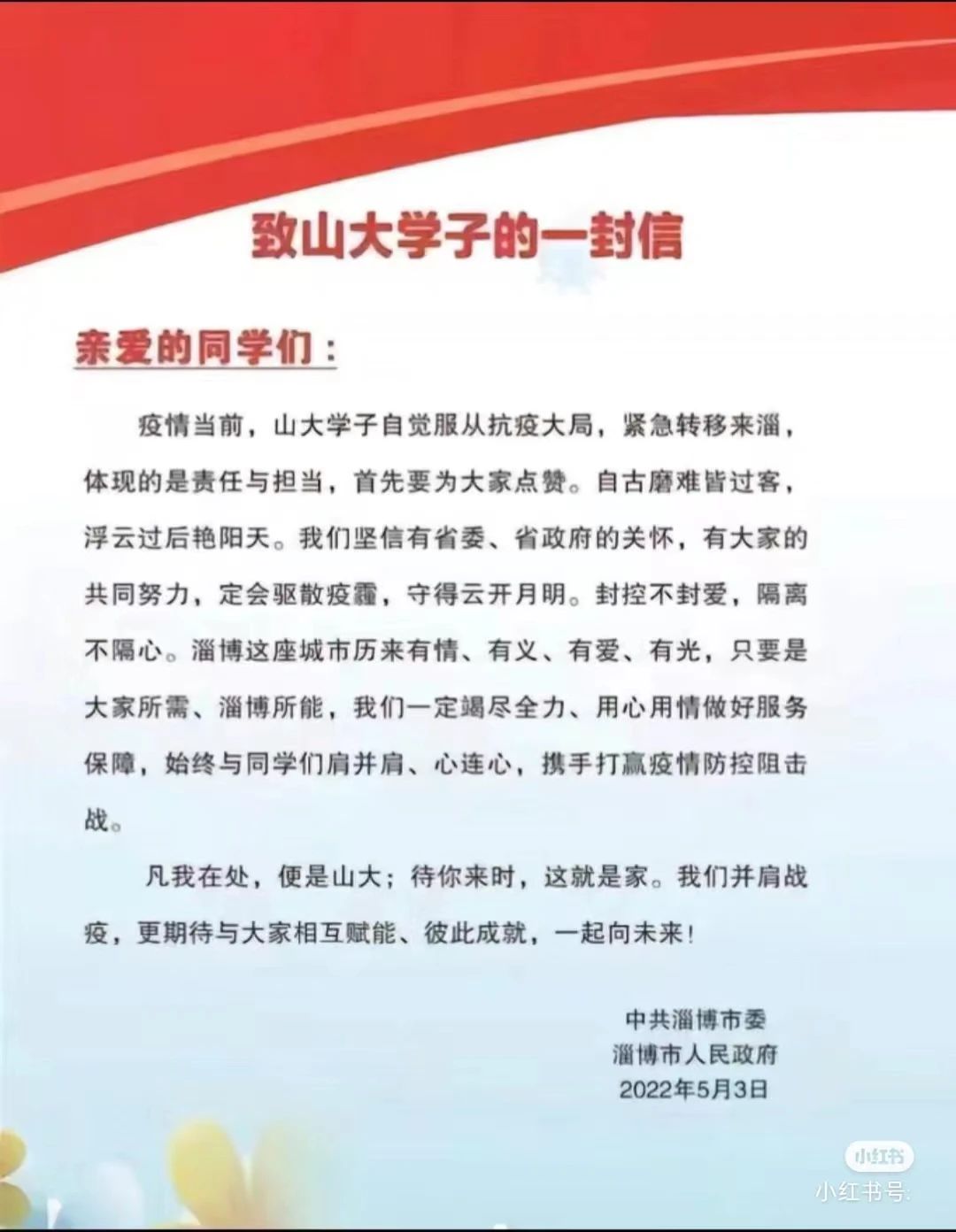 在隔離結(jié)束之后,淄博基本包場(chǎng)了全城的燒烤店給大家餞行,并且向大學(xué)生們發(fā)出邀請(qǐng),待疫情散去,春暖花開,再回來吃燒烤。