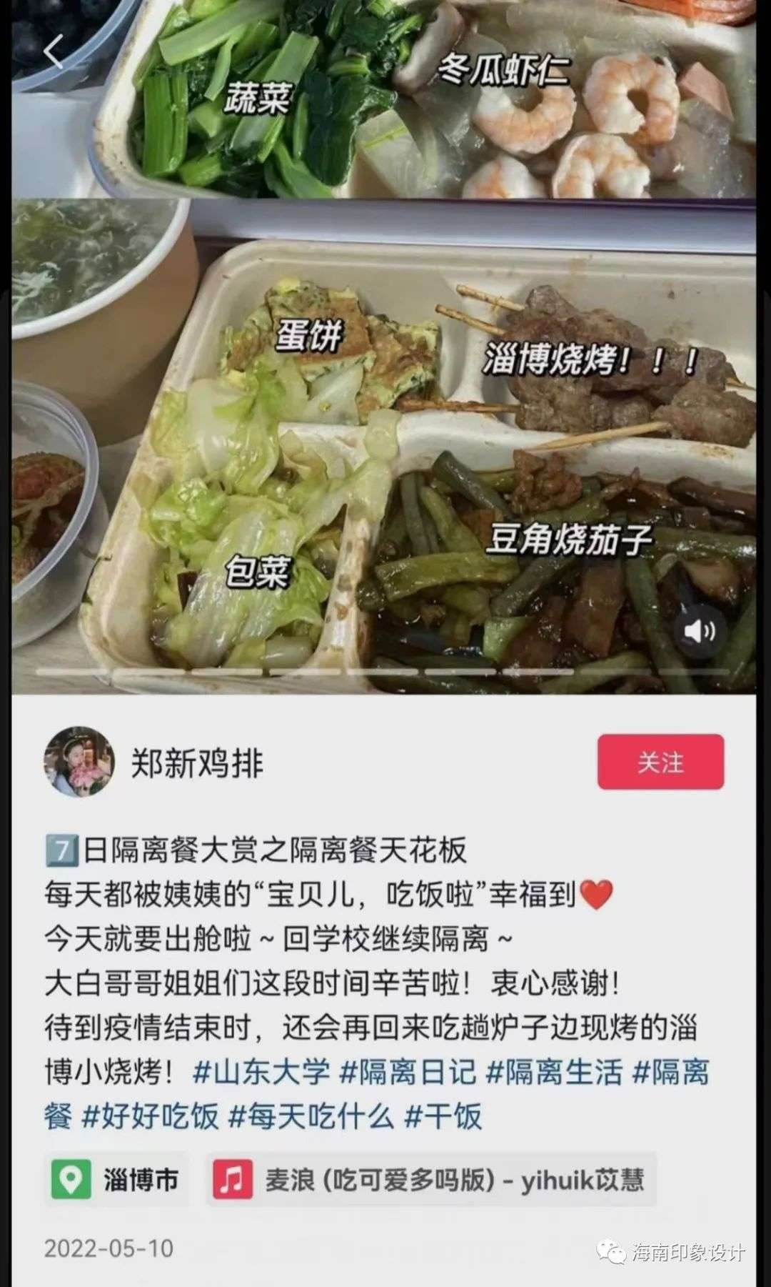 淄博做了完全的準(zhǔn)備,拿出十分的熱情和誠(chéng)意為隔離中的山大學(xué)子提供服務(wù)保障,飯菜標(biāo)準(zhǔn)至少是四菜一湯,伙食供應(yīng)中竟然還有燒烤。