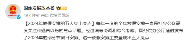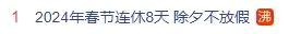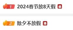發(fā)布的當(dāng)天上午,“2024年春節(jié)連休8天”、“除夕不放假”的信息就沖上了熱搜第一榜。