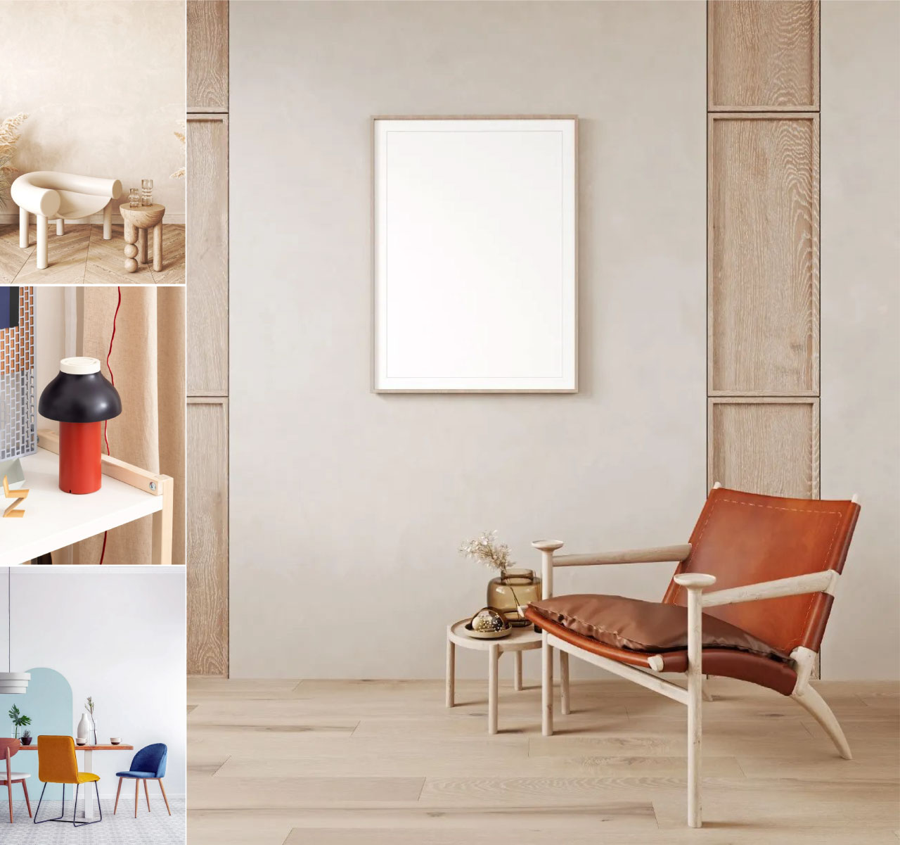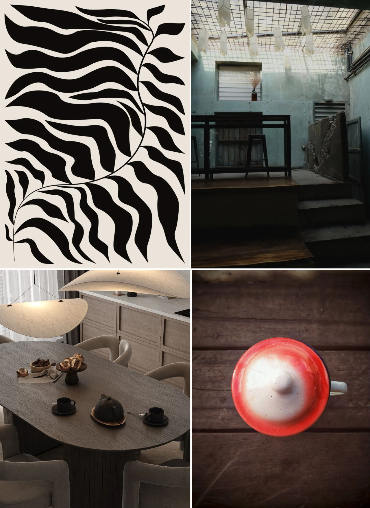 Japandi 設(shè)計(jì)融合了斯堪的納維亞極簡(jiǎn)主義與日本設(shè)計(jì)中流行的有機(jī)形式和紋理,可以使用具有大量紋理、舒緩設(shè)置以及更深顏色的圖像。