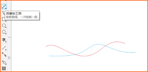 用貝賽爾工具畫兩條曲線(也可以是其它圖形,這里以曲線示例)。